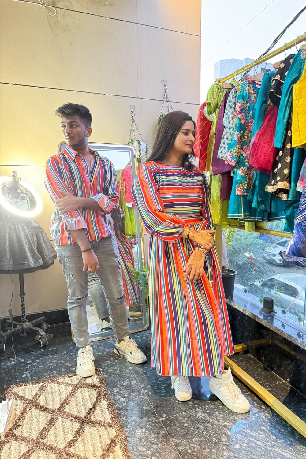 Celebrate togetherness in style with this beautifully coordinated couple set, designed for couples who love to match and make a statement. Made from high-quality, soft fabric, this set includes a comfortable outfit for both him and her, blending modern design with traditional elegance. Ideal for special occasions, photoshoots, or even casual outings, the set features complementary colors and patterns that highlight unity and style. With flattering fits and a timeless look, this couple set is perfect for couples who want to express their bond through fashion. Available in multiple sizes to ensure a comfortable, stylish fit for both.