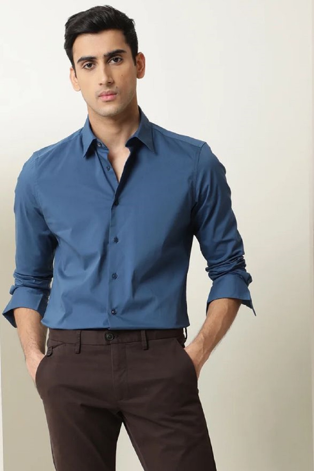 Refresh your wardrobe with the timeless elegance of this Men's Blue Cotton Shirt. Crafted from high-quality cotton, this shirt is designed for ultimate comfort and breathability, making it perfect for all-day wear. The classic blue color exudes sophistication, making it an ideal choice for both casual and semi-formal occasions.