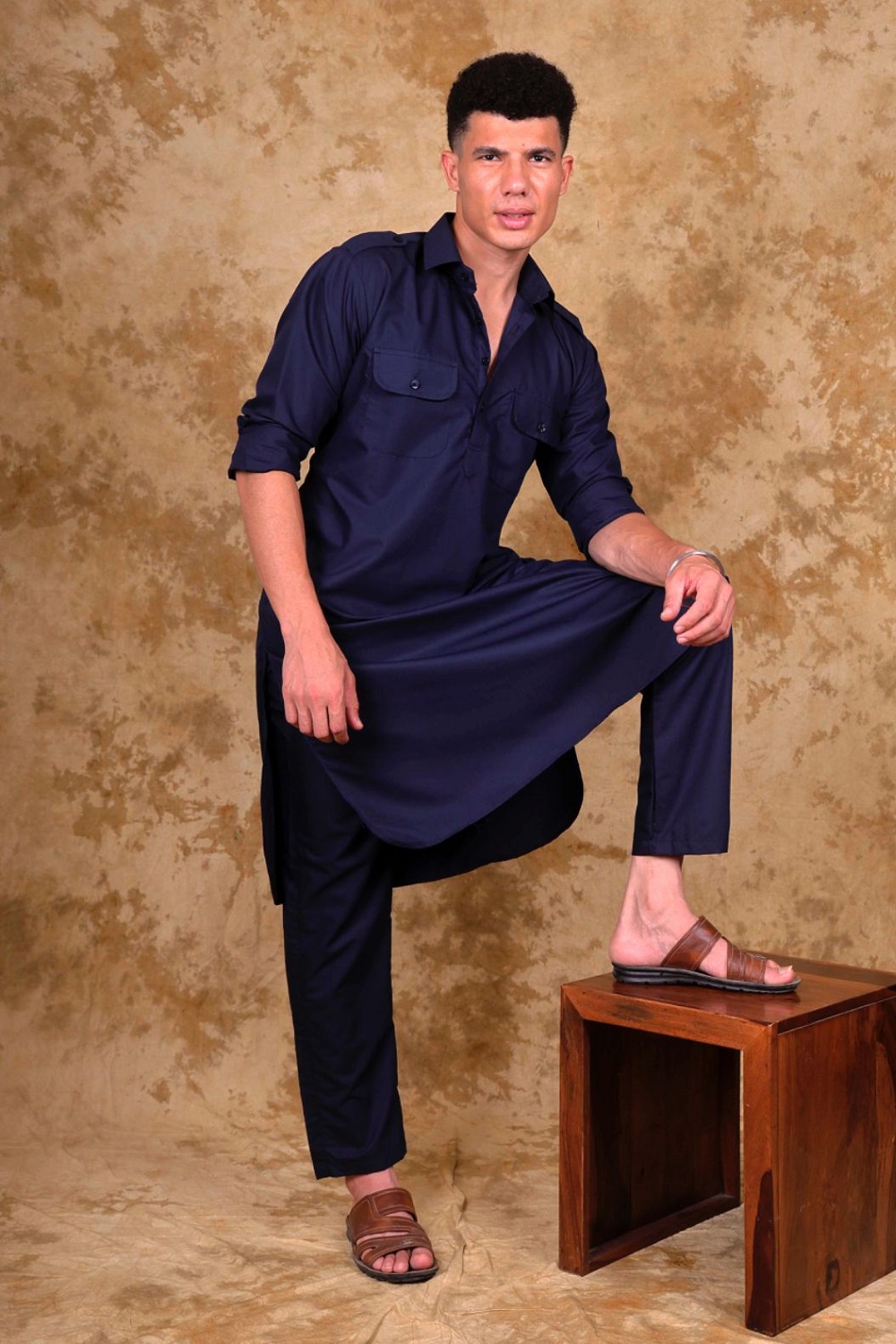 Elevate your ethnic style with our Men's Blue Cotton Pathani Suit, a perfect blend of tradition and modern sophistication. Crafted from premium-quality cotton, this Pathani suit offers unparalleled comfort and a refined look, making it an ideal choice for festive occasions, weddings, or casual gatherings.