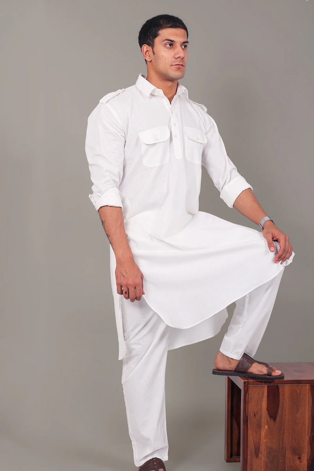 Add a touch of sophistication and tradition to your wardrobe with our Men’s White Cotton Pathani Suit. Perfectly crafted for special occasions, this classic ensemble combines timeless style with modern comfort. Made from soft, breathable cotton fabric, this Pathani suit offers an effortlessly stylish look while keeping you comfortable throughout the day.