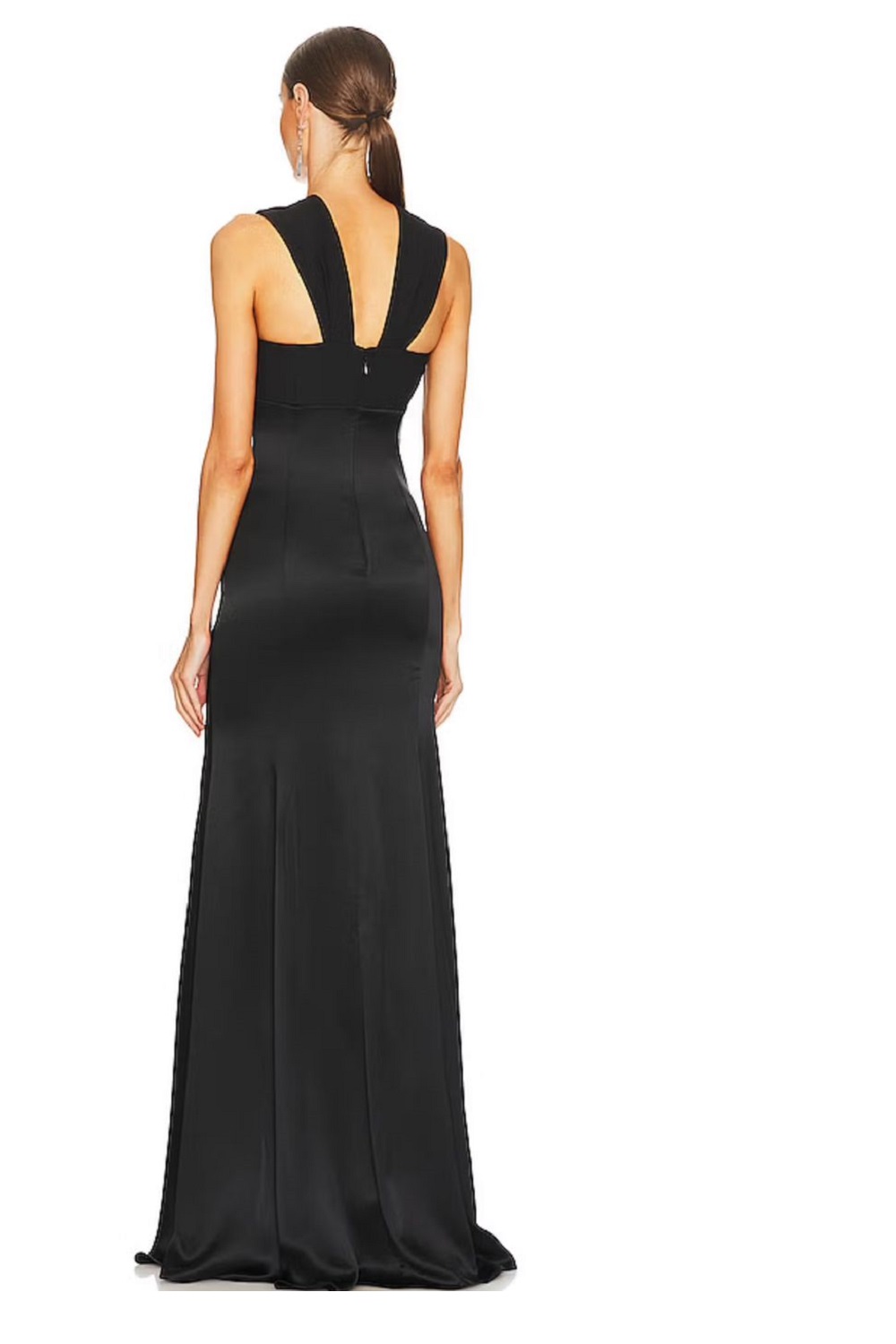 Make a statement with this stunning black evening gown, crafted to perfection for glamorous events. Featuring a sophisticated halter neckline, a ruched design at the waist, and a high-slit silhouette, this dress exudes elegance and allure. The floor-length train adds a dramatic touch, making it ideal for formal occasions, red carpet events, or cocktail parties.