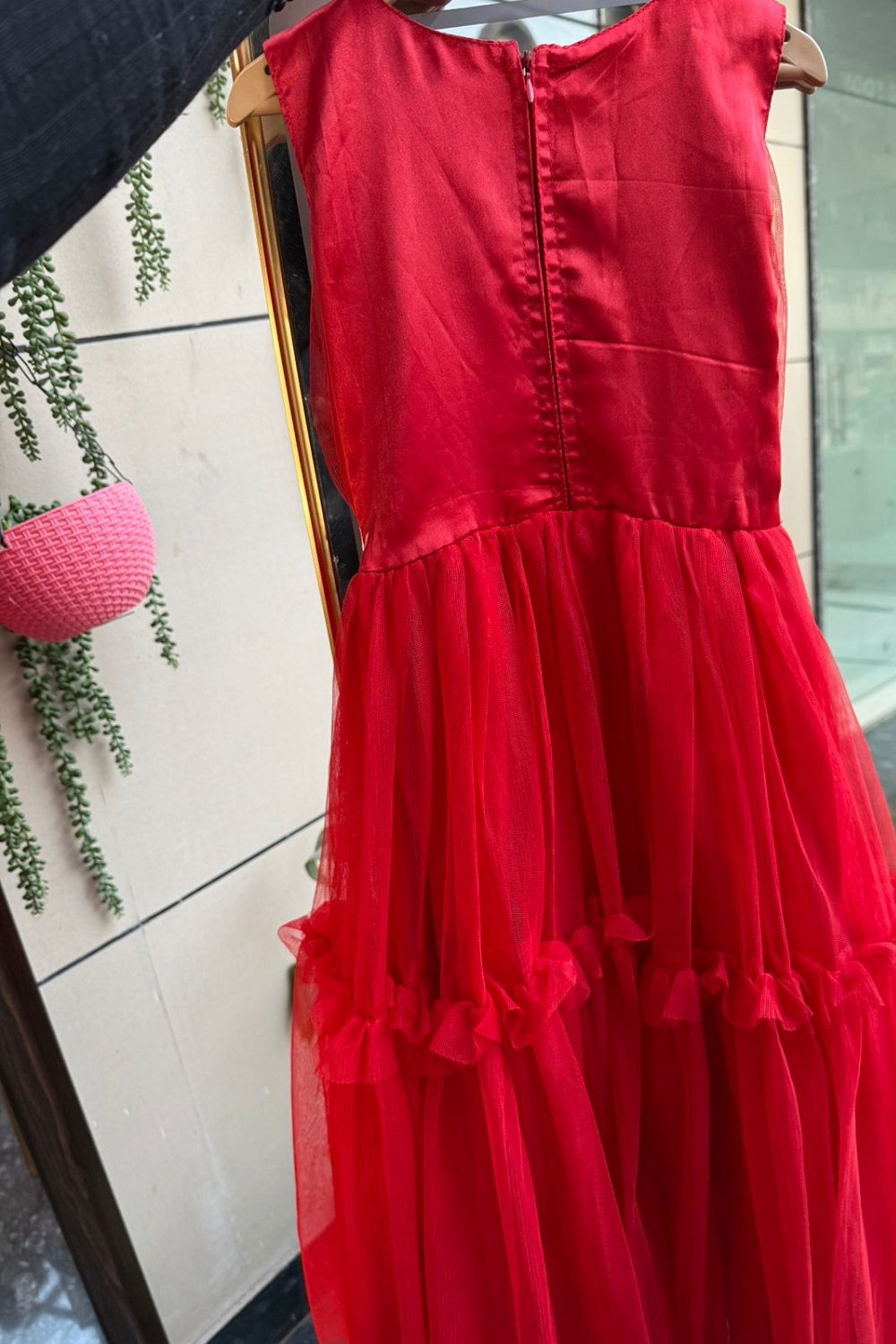 Dress your little princess in this adorable red dress, perfect for adding charm and elegance to her wardrobe. Made from soft, breathable fabric, this dress ensures maximum comfort for delicate skin while keeping her looking picture-perfect. The rich red hue adds a vibrant touch, making it ideal for festive occasions, family gatherings, or even casual outings. With thoughtful details like ruffled sleeves, cute bows, or delicate lace trim, this dress is designed to make every moment extra special.